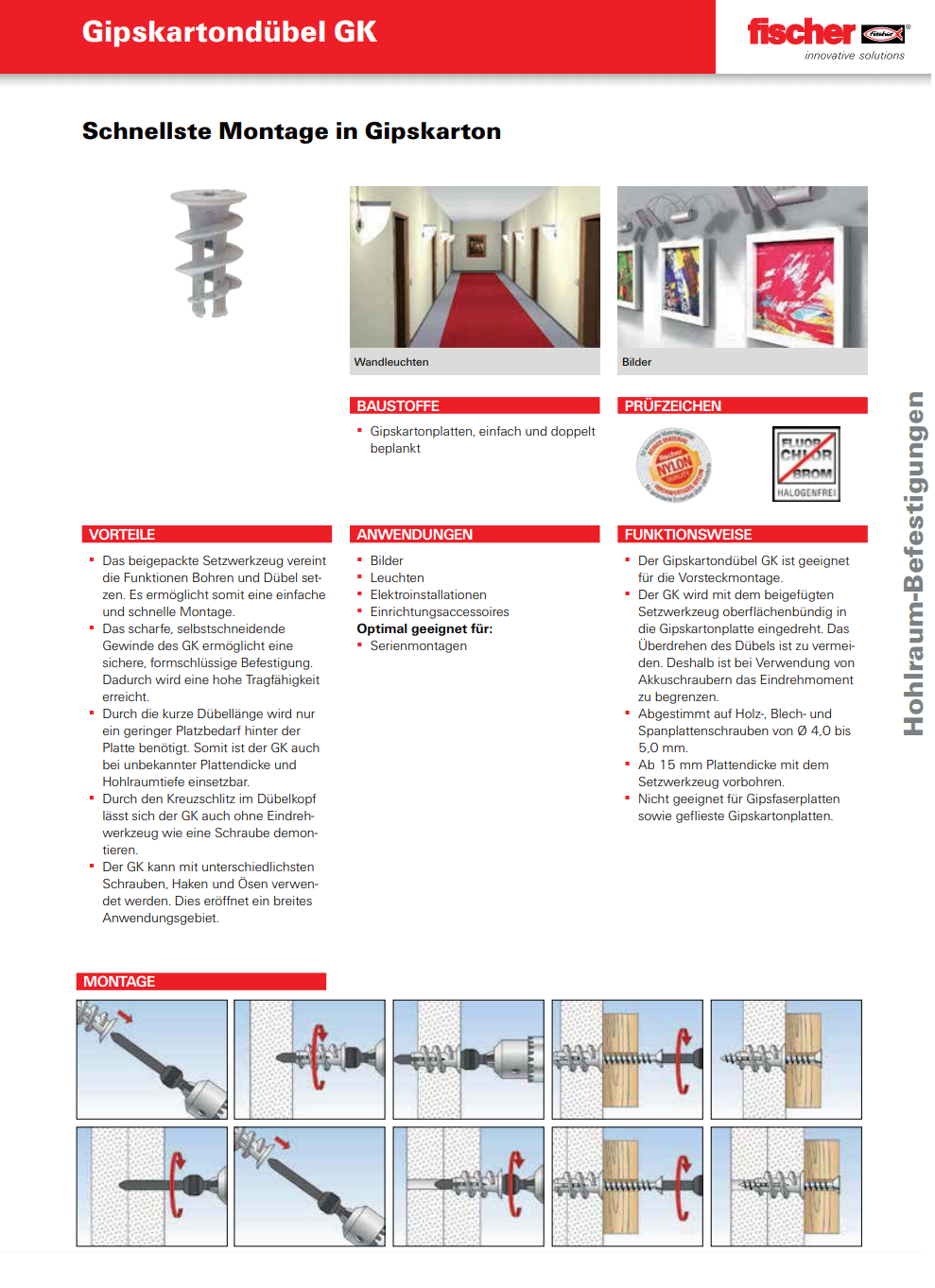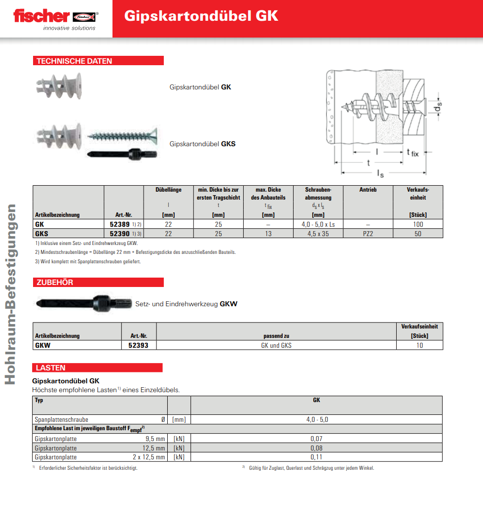 FISCHER Gipskartondübel inkl. Setzwerkzeug, GKS Nylon 22mm