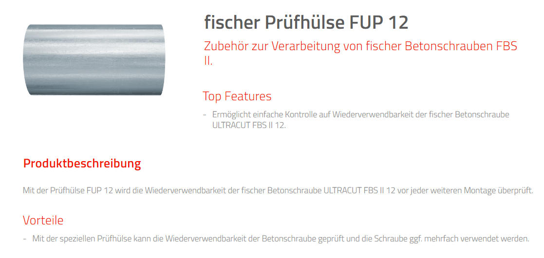 FISCHER ULTRACUT Prüfhülse, FBS II Stahl FUP 12