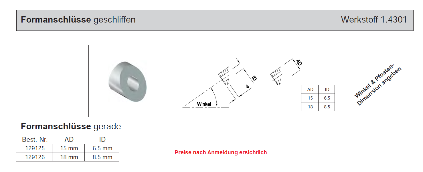 Formstücke geschliffen gerade, 1.4301 rostfrei 13-6,5