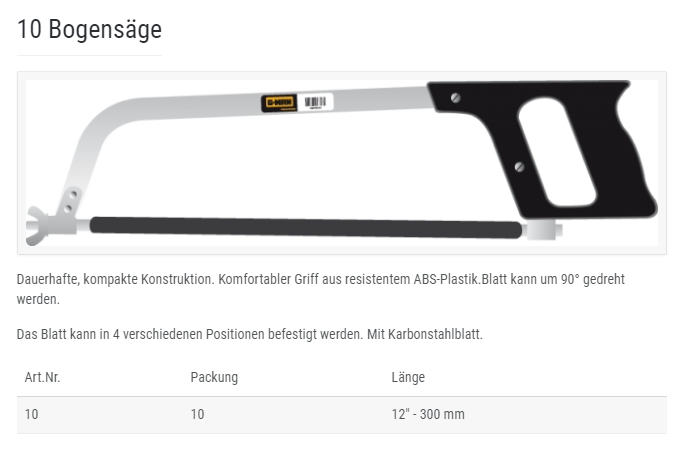 G-MAN Bogensäge mit Karbonstahlblatt, 300mm-12"