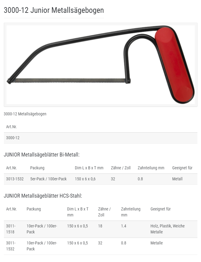 G-MAN Sägeblätter für Junior Metallsägebogen, Bi-Metall 150x6x0,6