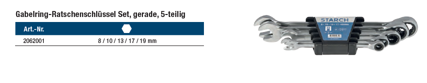 Gabelring-Ratschenschlüssel-Set STARCH 5-teilig, gerade Chrom-Vanadium-Stahl matt satiniert