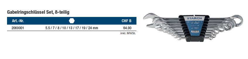Gabelringschlüssel-Set STARCH 8-teilig, Chrom-Vanadium-Stahl matt satiniert