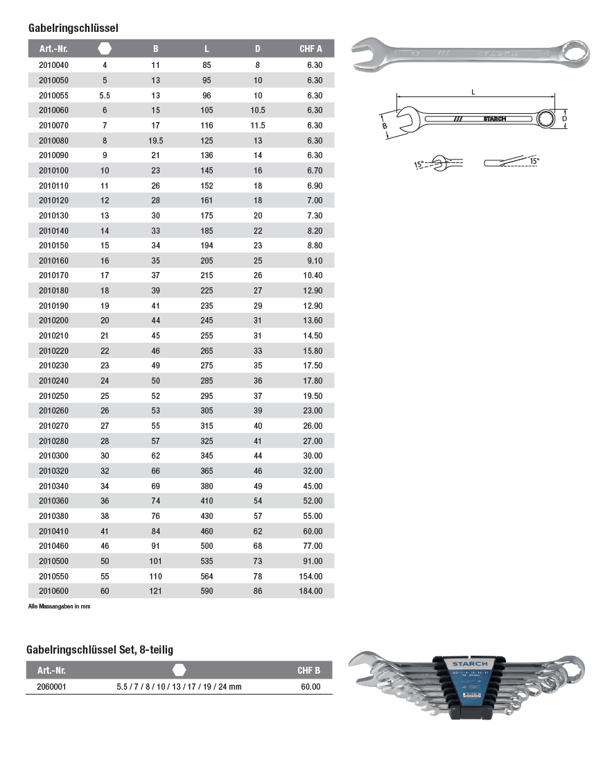 Gabelringschlüssel STARCH, Chrom-Vanadium-Stahl matt satiniert 14x185