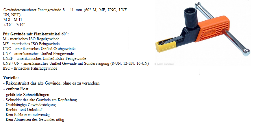 Gewinderestaurierer für Innengewinde, M8-M11