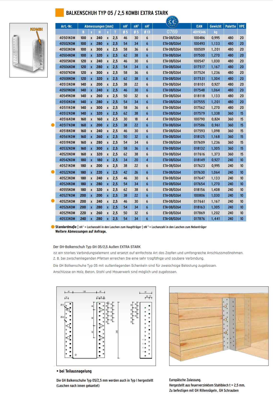 GH-Balkenschuh Typ 05 aussen Kombi, Typ 05 Stahl sendzimirverzinkt 180x220x2,5