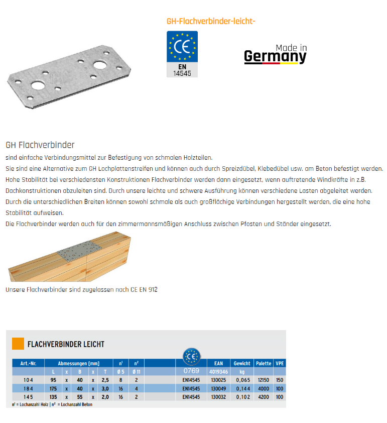GH-Flachverbinder leicht, Stahl sendzimirverzinkt 95x40x2,5