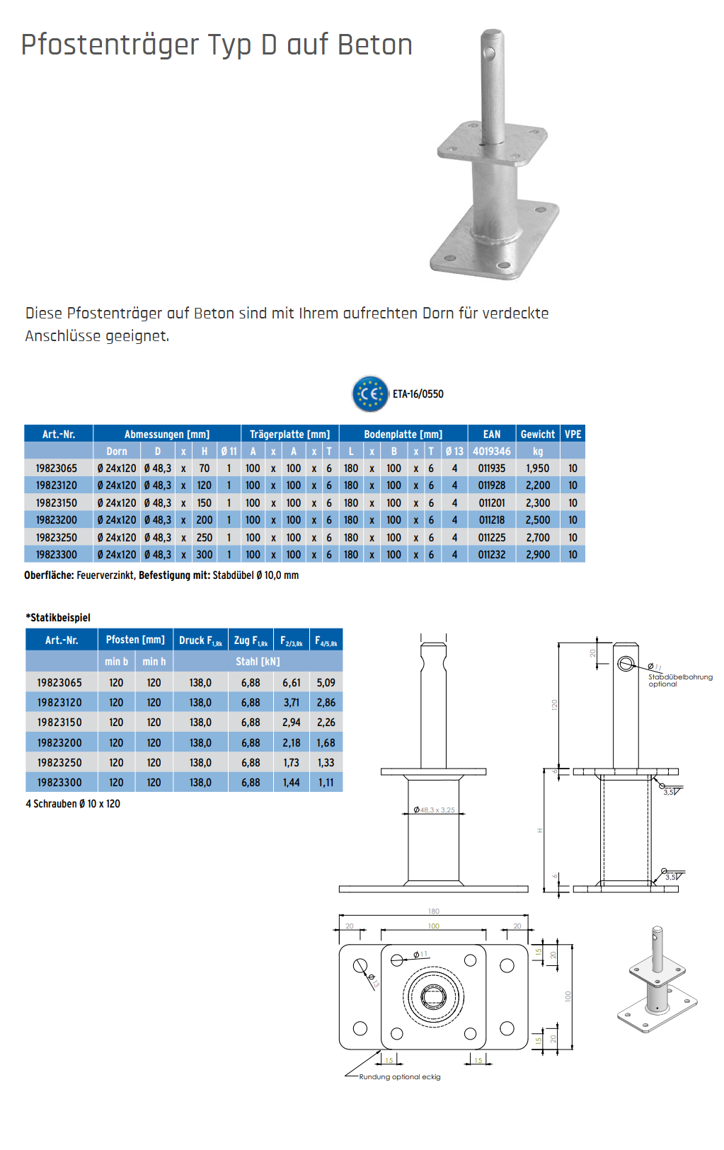 GH-Stützenfuss Typ D auf Beton, Typ D Stahl feuerverzinkt ø48,3x300