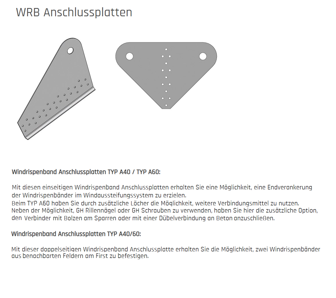 GH-Windrispenband Anschlussplatten, Typ A40/60 Stahl sendzimirverzinkt 190x290x2,0