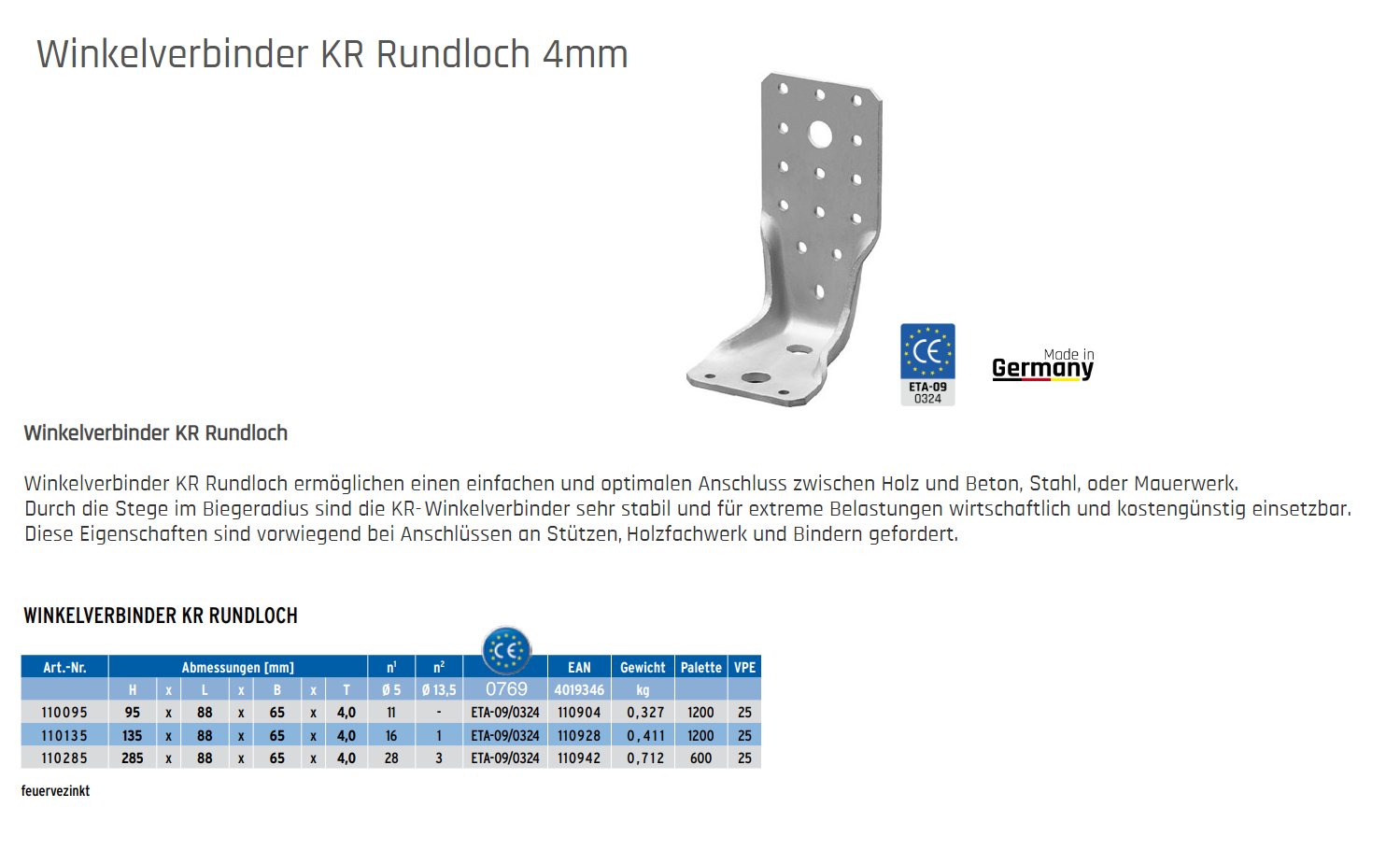 GH-Winkelverbinder Rundloch, Typ KR Stahl feuerverzinkt 135x88x65
