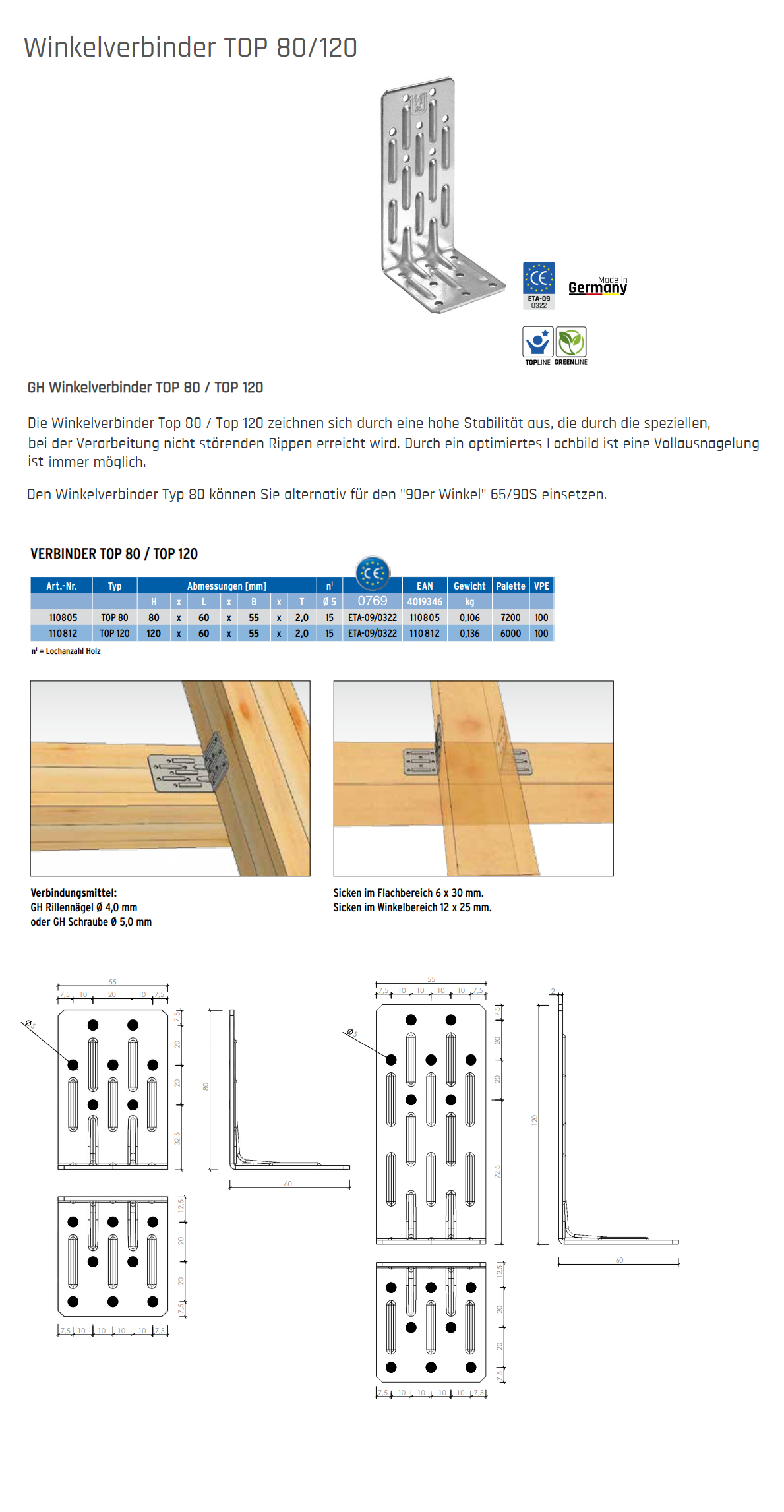 GH-Winkelverbinder TOP, Typ TOP 120 Stahl sendzimirverzinkt 120x60x55