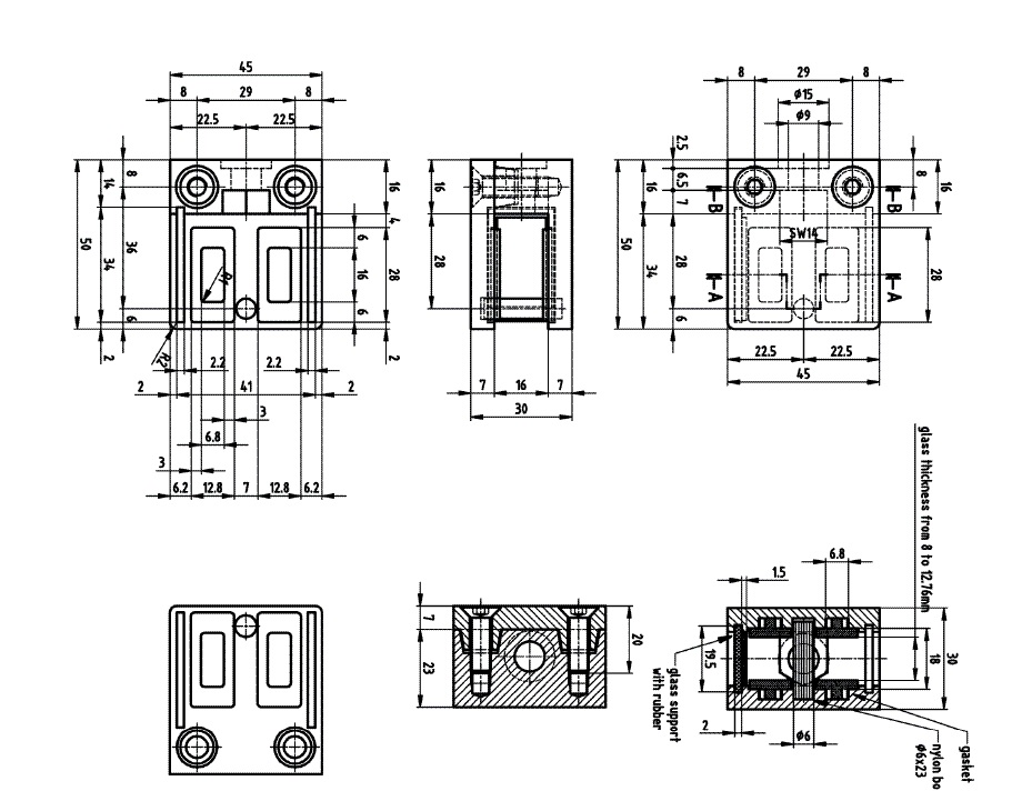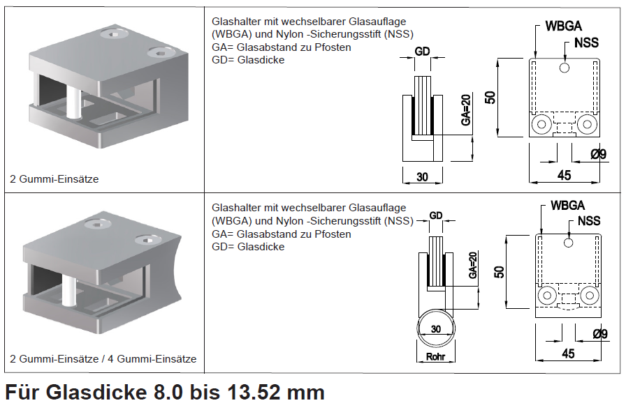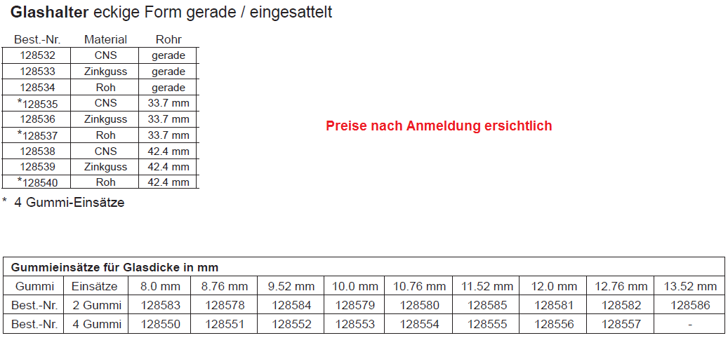 Glashalter eckige Form 45x50, gerade, rostfrei Glas 12,76