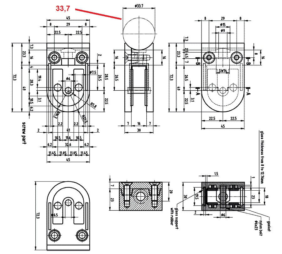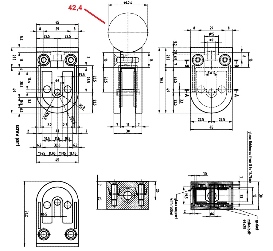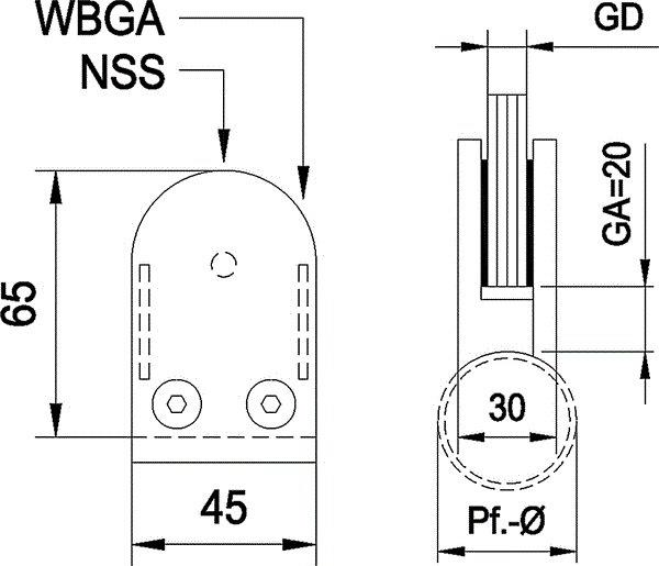 Glashalter runde Form 45x65, eingesattelt, Zinkguss roh 11,52-42,4