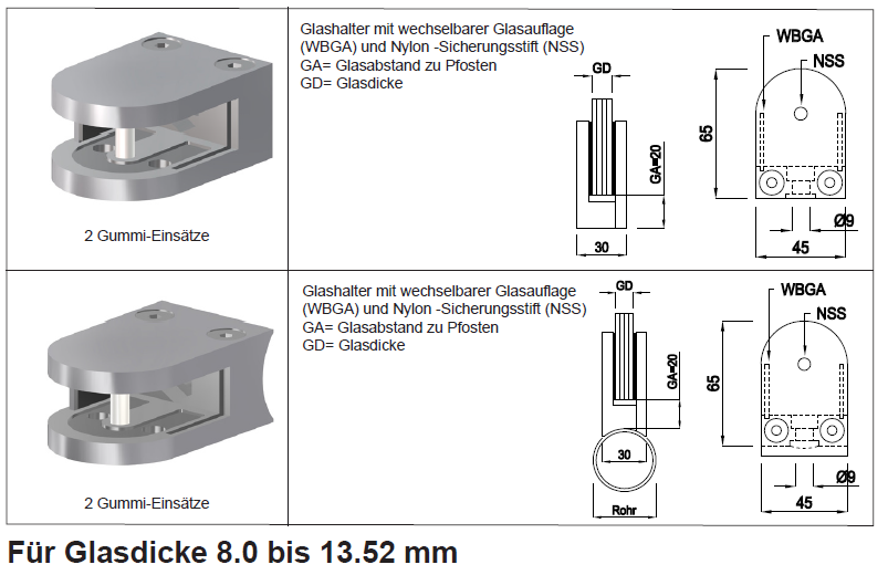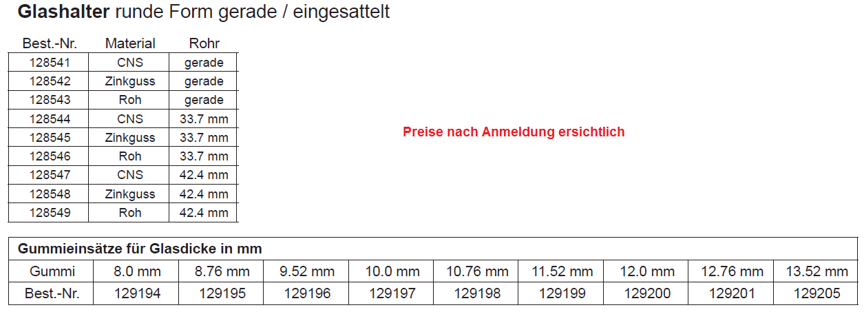 Glashalter runde Form 45x65, gerade, Edelstahleffekt Glas 12