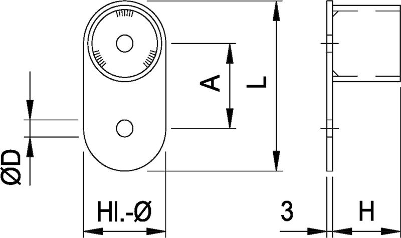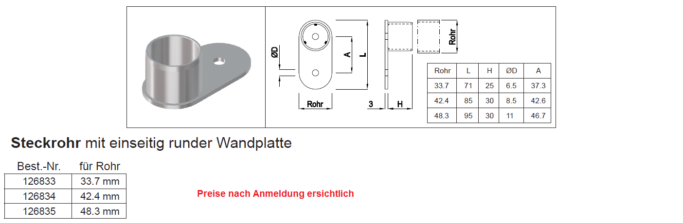 Handlaufsteckrohr mit einseitig runder Wandplatte, CNS 1.4301 geschweisst 48,3