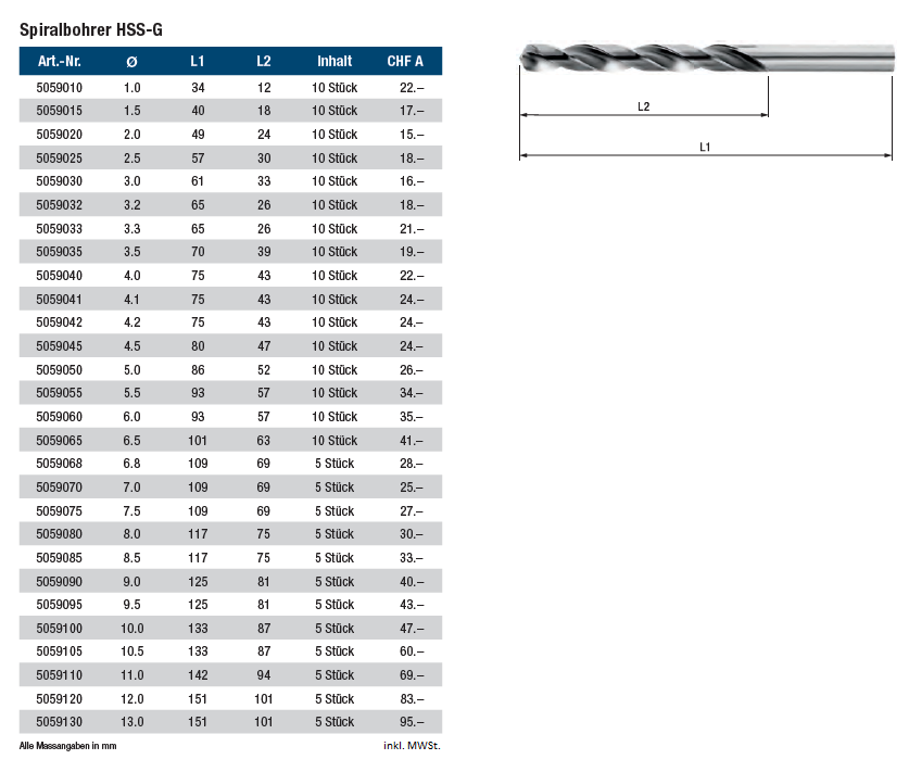 HSS-G Spiralbohrer STARCH, DIN338 HSS-G 9.0x125