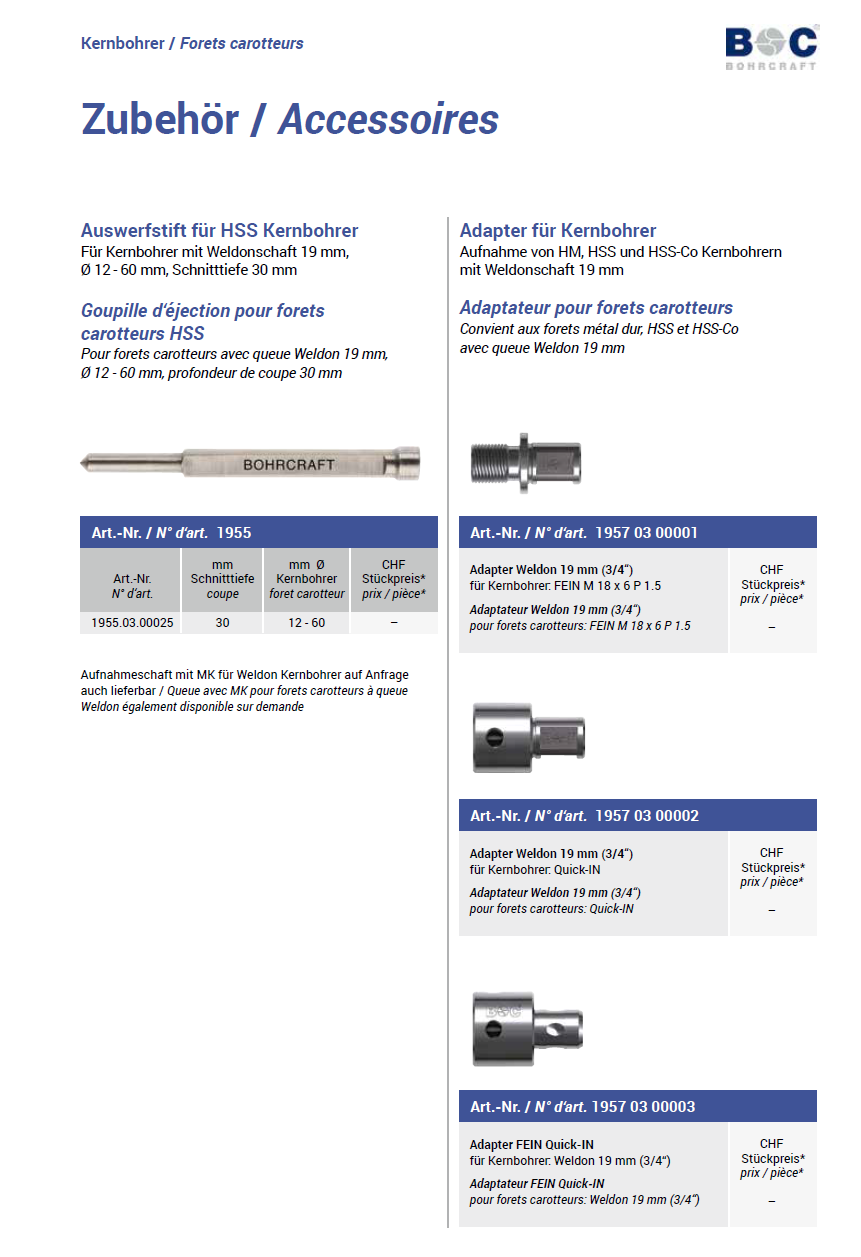 Bohrcraft Auswerfstift für HSS Kernbohrer, HSS