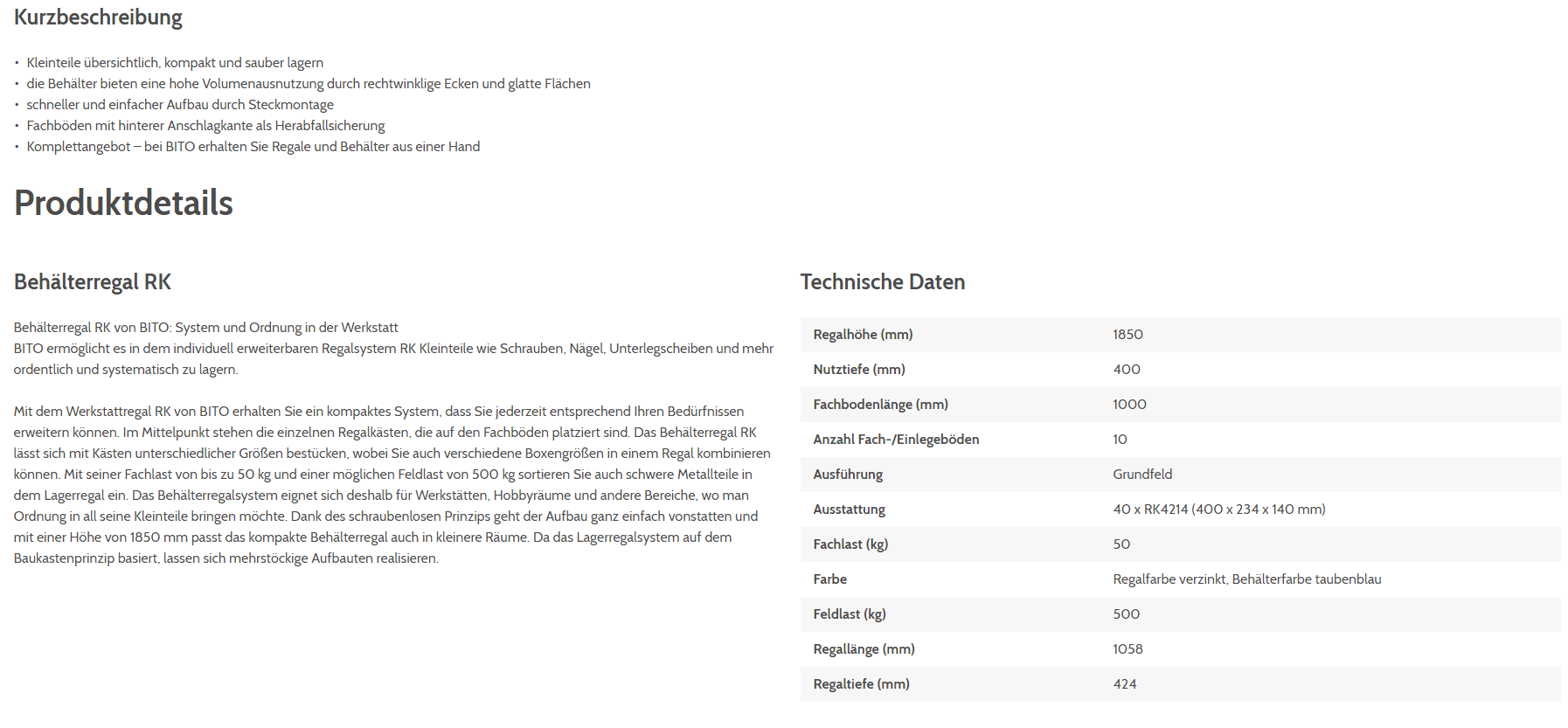 Behälterregal BITO inkl. 40 Regalkästen, Grundelement verzinkt 1850x1058x424