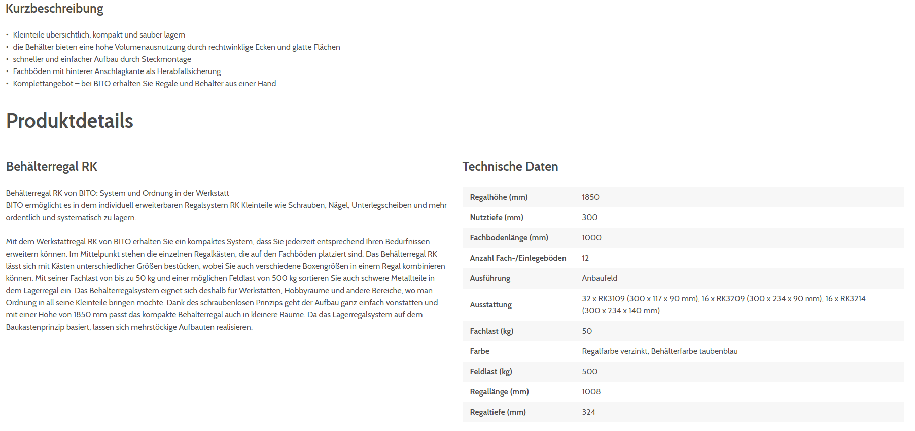 Behälterregal BITO inkl. 64 Regalkästen, Anbauelement verzinkt 1850x1008x324