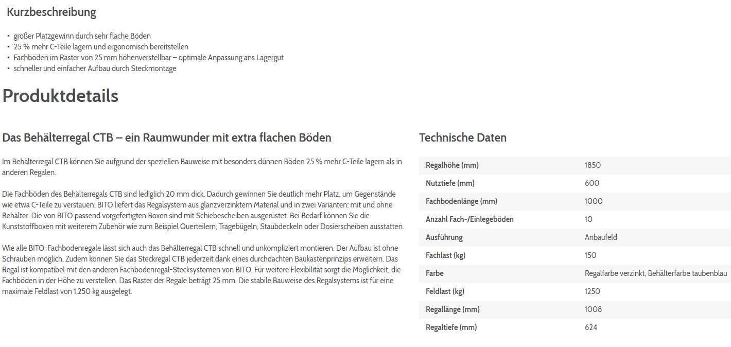 Behälterregal BITO CTB, Anbauelement verzinkt 1850x1008x624
