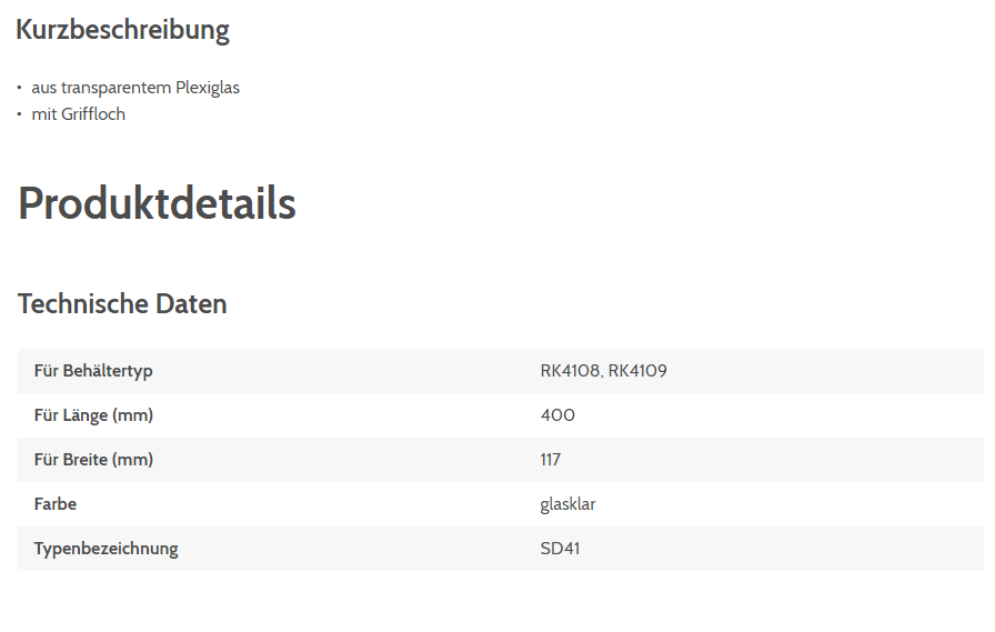 Staubdeckel BITO SD41 für RK4108/RK4109, SD41 Plexiglas, transparent 365x106