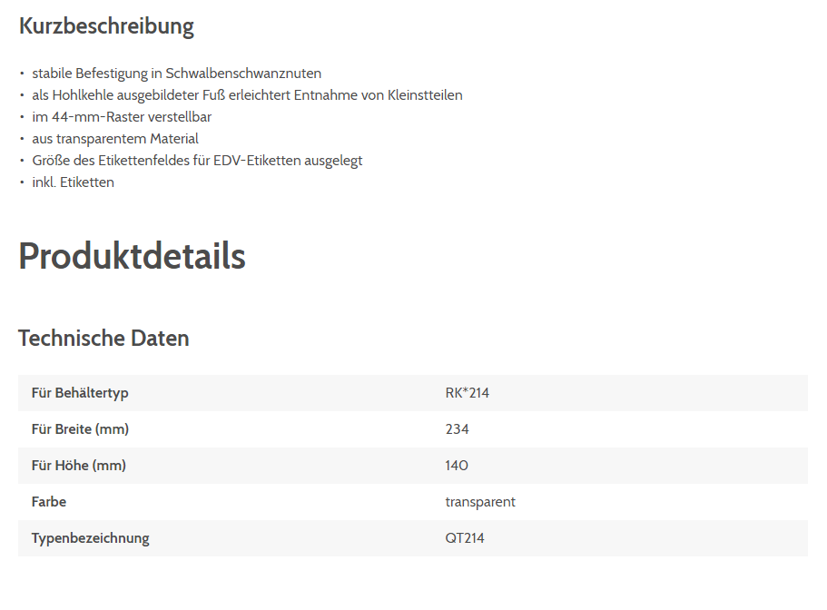 Querteiler BITO QT214 für Regalkästen RK214, QT214 transparent für 234x140
