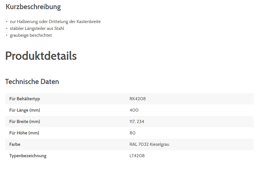 Längsteiler BITO LT4208 für RK4208, LT4208 Stahl für 400x117/234x80