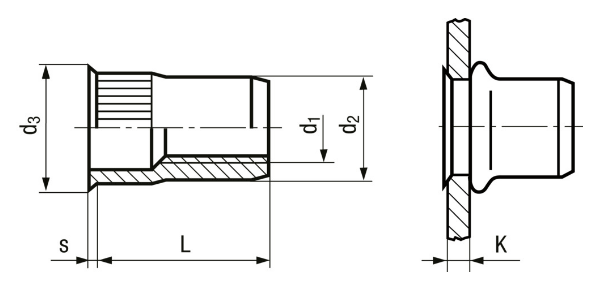 Blindnietmuttern kl. Senkkopf, gerändelt, offen, AVDEL® Stahl verzinkt M8x17,3 K:0,5-3,5