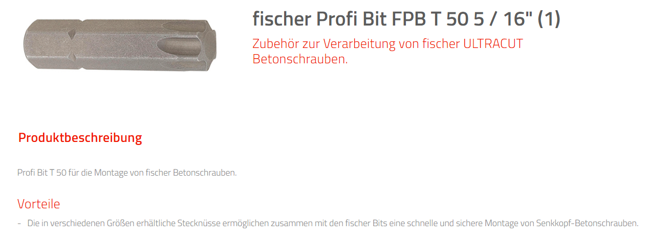 FISCHER ULTRACUT Profi Bit 5/16", FPB Stahl 35mm TX50