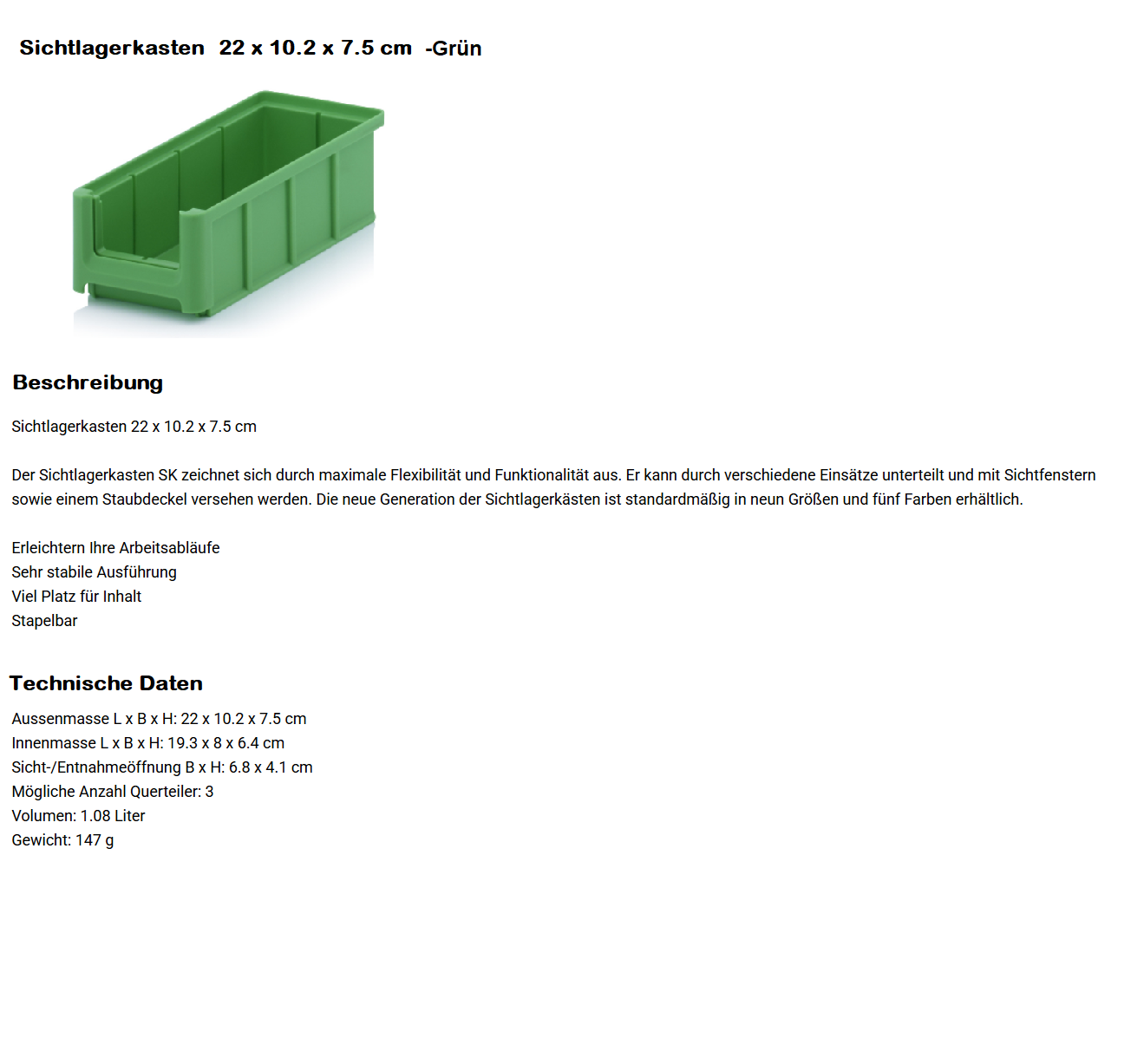 Sichtlagerkasten , SK2L-GRUEN22 PP 220x102x75