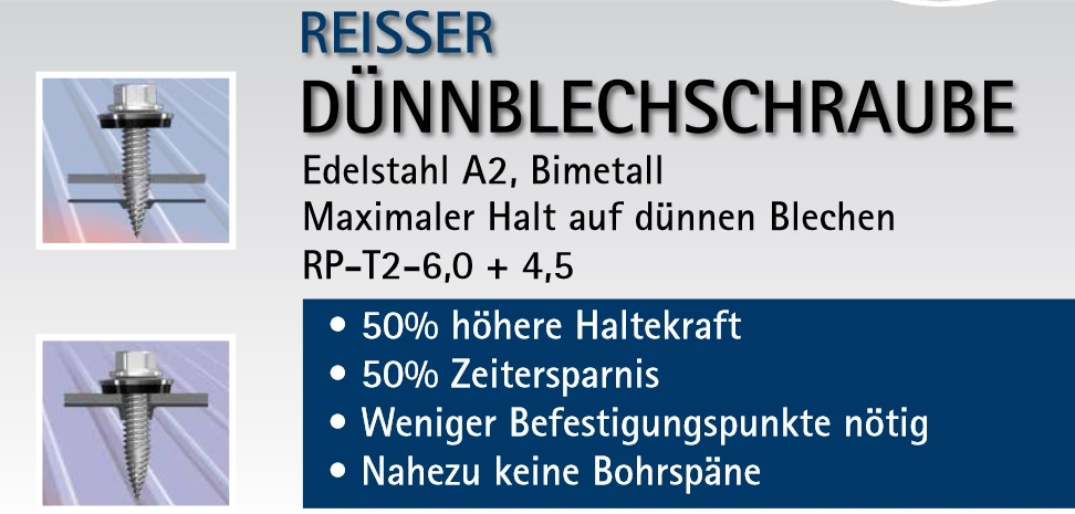 6kt Dünnblechschraube o. Dichtscheibe, RP-T2 Bohr:1,25-2x1 Bimetall 6x38 23