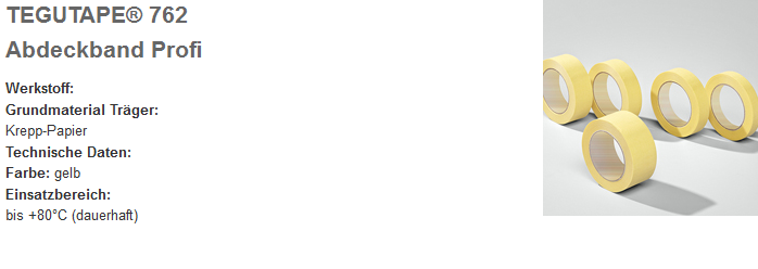 Abdeckband Profi TEGUTAPE® 762, Krepp-Papier, gelb 50x50m 115my