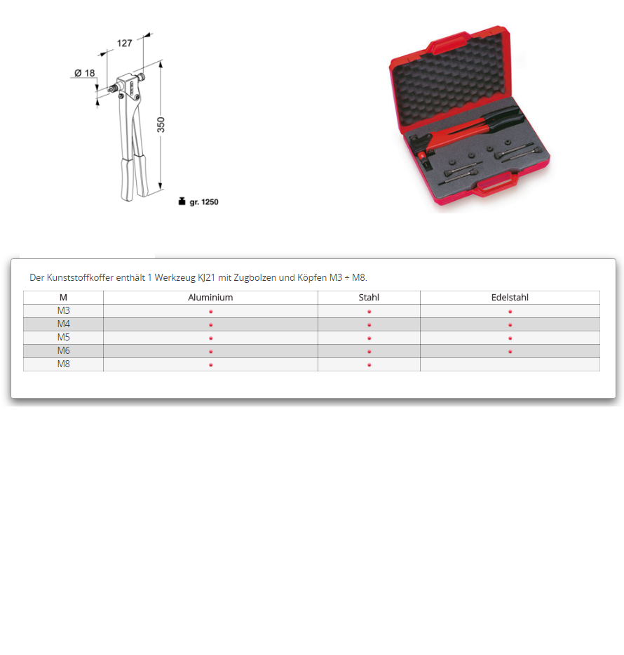 Handnietmutterzange FAR, Typ KJ21 komplett M3-M8