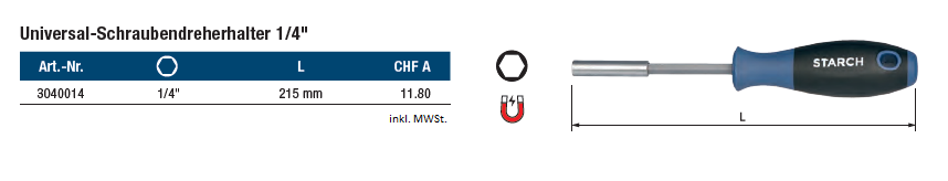 Universal-Schraubendreherhalter STARCH 1/4", 215mm 1/4"