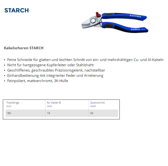 Kabelschere STARCH, mattverchromt feinpoliert 165mm