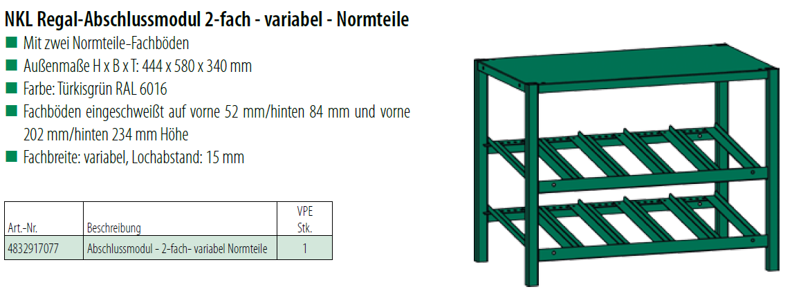 Küwi NKL Regal-Abschlussmodul 2fach-variabel-Norm, Stahl, RAL6016, türkisgrün 444x580x340