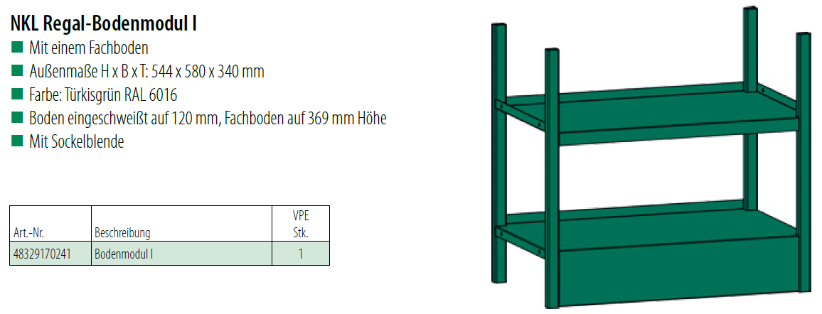 Küwi NKL Regal-Bodenmodul I, Stahl, RAL6016, türkisgrün 544x580x340
