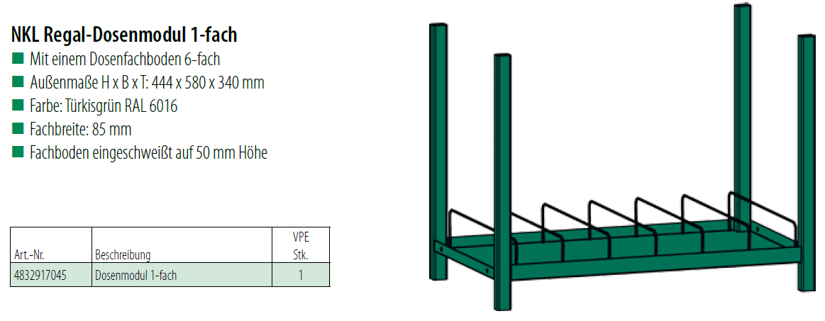 Küwi NKL Regal-Dosenmodul 1-fach, Stahl, RAL6016, türkisgrün 444x580x340
