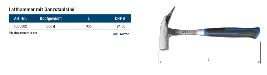 Latthammer STARCH mit Ganzstahlstiel, 335mm
