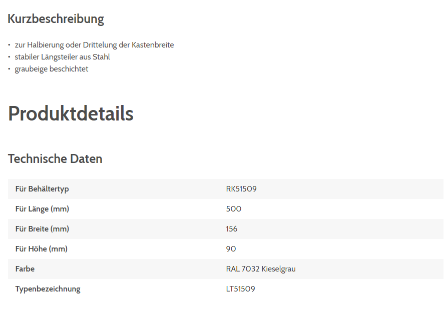 Längsteiler BITO LT51509 für RK51509, LT51509 Stahl für 500x156x90