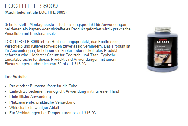 Loctite Anti Seize Kupfer Schmierstoff, Typ LB 8009 metallfrei, grau 454g