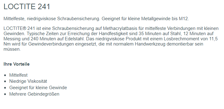 Loctite Schraubensicherung, Typ 241 mittelfest, blau 250ml
