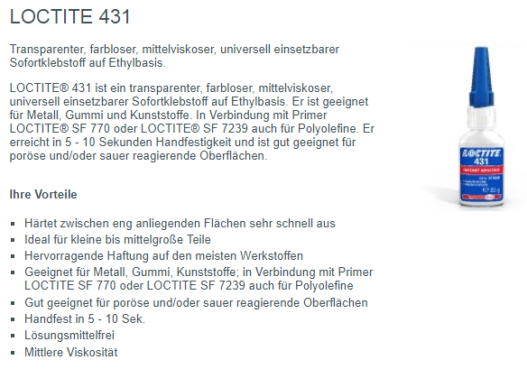 Loctite Sofortklebstoff 1K, Typ 431 transparent, farblos 500g