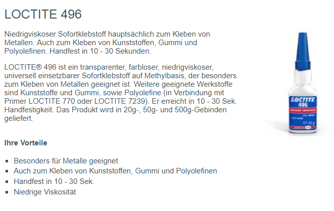 Loctite Sofortklebstoff 1K, Typ 496 transparent, farblos 500g
