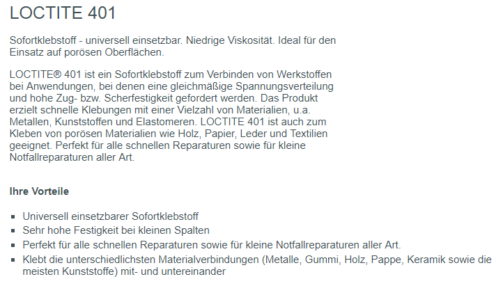 Loctite Sofortklebstoff, Typ 401 transparent, farblos 20g