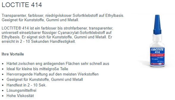 Loctite Sofortklebstoff, Typ 414 transparent, farblos 20g