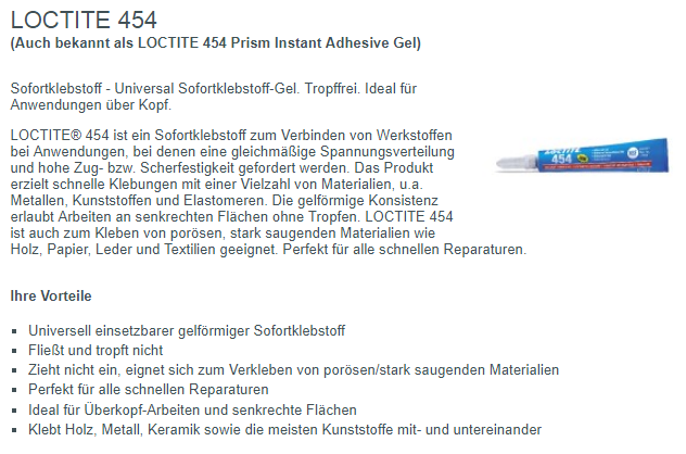 Loctite Sofortklebstoff, Typ 454 transparent, farblos 3g