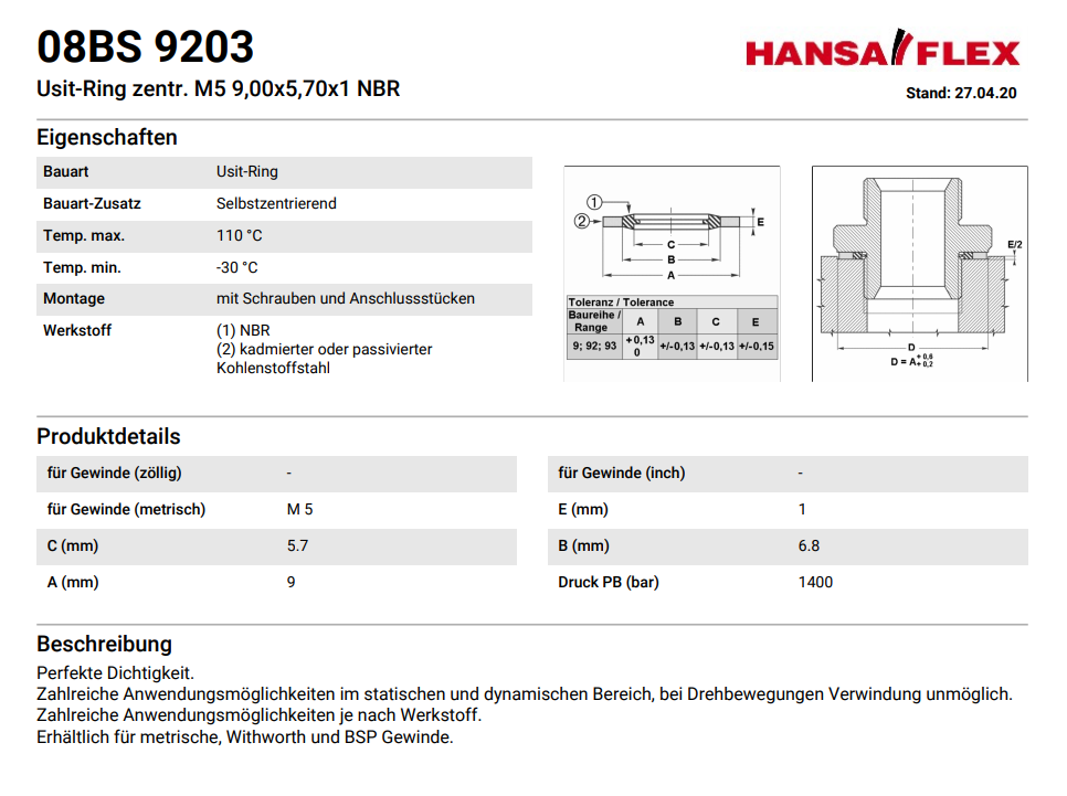 Schraubensicherungen selbstzentrierend, NBR/Stahl vz. M5/5,7x9,0x1,0