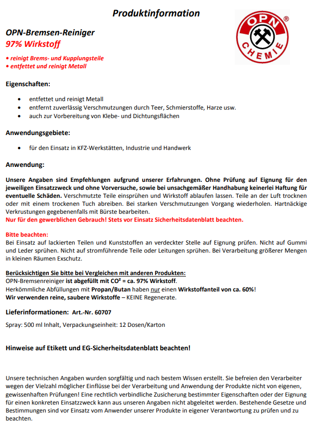 OPN Bremsenreiniger-Spray, 97% Wirkstoff 500ml