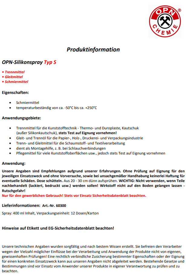 OPN Silikonspray Typ S Gleit und Trennmittel, 400ml